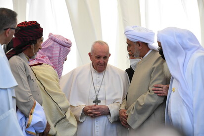 Roma. Di buon mattino la partenza per Najaf, dove il Papa ha incontrato il Grande ayatollah Ali al Sistani, tra gli appuntamenti più attesi del viaggio apostolico in Iraq iniziato venerdì e che si concluderà lunedì in mattinata con la partenza alla volta di Roma. L’incontro, ha detto il direttore della Sala stampa vaticana, Matteo Bruni, “è stata l’occasione per il Papa di ringraziare il Grande Ayatollah al Sistani perché, assieme alla comunità sciita, di fronte alla violenza e alle grandi difficoltà degli anni scorsi, ha levato la sua voce in difesa dei più deboli e perseguitati, affermando la sacralità della vita umana e l’importanza dell’unità del popolo iracheno”. Al termine del colloquio, durato quarantacinque minuti e immortalato da una foto destinata a entrare nella storia, Francesco – prosegue Bruni – “ha ribadito la sua preghiera a Dio, Creatore di tutti, per un futuro di pace e di fraternità per l’amata terra irachena, per il medio oriente e per il mondo intero”. Poco dopo, a Ur dei caldei, non distante dalla grande ziggurat, si è svolto l’incontro interreligioso. Letture dalla Genesi e dal Corano, testimonianze. E le parole del Papa, mentre il vento del deserto faceva sentire la propria voce, amplificata dai microfoni.