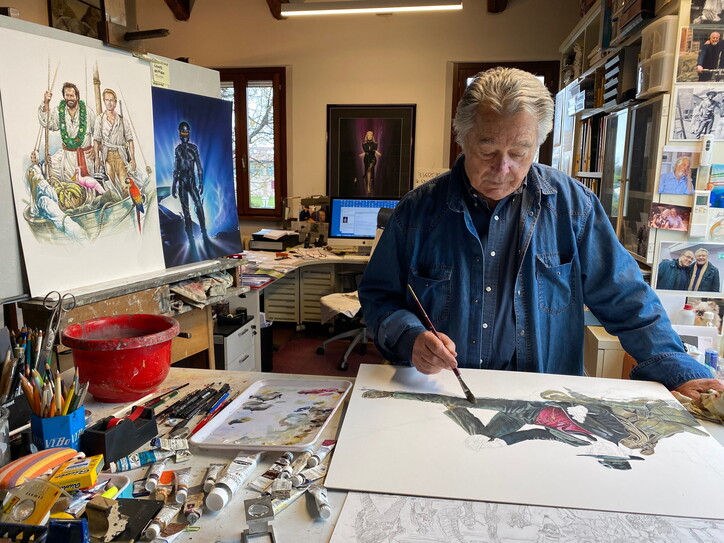 Negli anni ’80 e ’90, con la piena maturità arrivarono anche le commissioni per i film dei registi più importanti. «Allora il regista interveniva nel mio lavoro – racconta – Sergio Leone e Bernardo Bertolucci erano felicissimi di potermi consigliare, darmi qualche spunto. Nasceva una collaborazione totale tra regista, produttore e attori. Quando feci la serie di film di Bud Spencer e Terence Hill ero il loro pittore ufficiale. Erano loro stessi a cercarmi perché si riconoscevano nei miei dipinti. Ero riuscito a scavare nella loro anima, avevo colto il loro lato umano fra l’umorismo e il sarcasmo, avevo creato uno stile mio di fare pubblicità. Per non parlare della relazione con Leone: l’opera più bella che ho realizzato per lui è senz’altro C’era una volta in America». Poi ha viaggiato per il mondo con i suoi manifesti. «Ho lavorato per tutti, I Rambo e i Conan negli Usa, Nikita e La Pantera rosa in Germania – racconta – ma quell’epoca d’oro è finita. Quando ho iniziato io le strade erano tappezzate di manifesti, i cartelloni erano determinanti. Il pubblico sceglieva il film da guardare in base a quelli. Oggi con la tecnologia, Photoshop e le campagne sui social, il manifesto non serve più, non ha la stessa funzione. Allora parlavamo davvero con il pubblico».