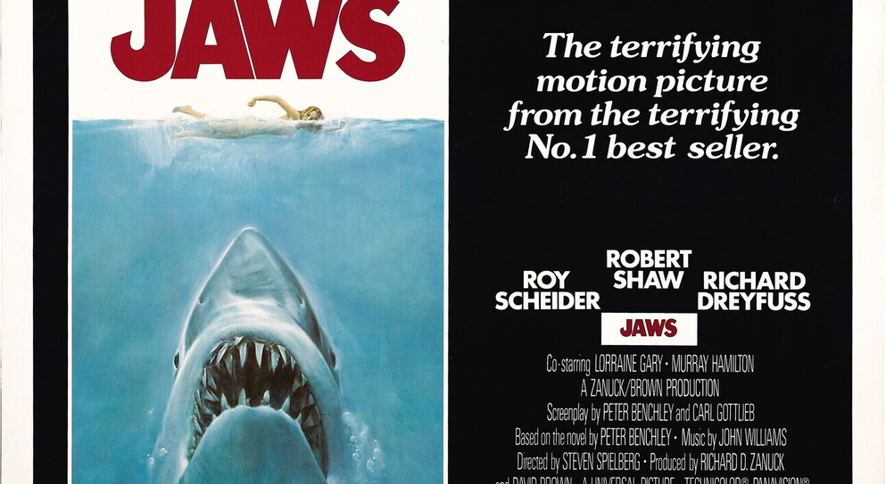 “Jaws (“mascelle”, “fauci”) è tratto da un bestseller di Peter Benchley del ’73 e diventa il prototipo del blockbuster estivo