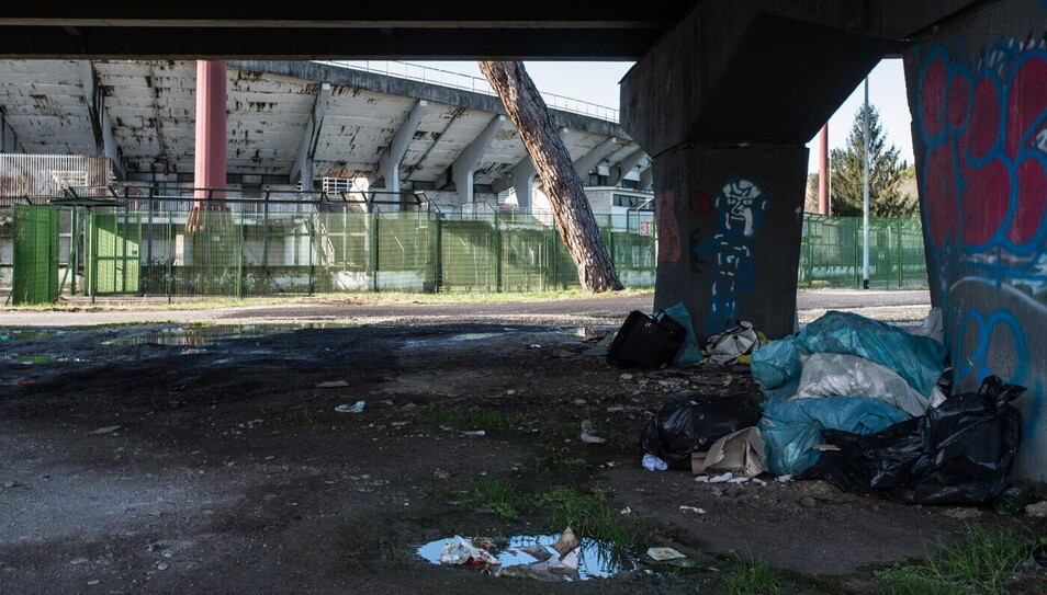 Se ne stanno lì, uno davanti all’altro a guardarsi. Altro non possono fare se non questo, il Palazzetto dello Sport e lo stadio Flaminio. Non c’è nulla che possa attrarre attenzione al loro interno. Tra loro c'è solo un parcheggione, qualche albero, più di un camper, pure quelli immobili. “Alcuni sono là da anni, chissà se sono ancora di qualcuno”.