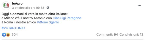 Scorrendo queste pagine è tuttavia difficile ricondurre il flusso dei messaggi e delle comunicazioni a un orizzonte comune. Quel che appare evidente invece è come queste chat siano diventate di settimana in settimana 'sfogatoio' di disagi personali, di carattere sociale ed economico, che hanno trovato nel green pass l'elemento di raccordo, in grado di canalizzare il malcontento e farsi simbolo di protesta, anche politica, pur partendo da presupposti diversi. Ed è su questo substrato che parte della politica, a partire da Fratelli d'Italia e Lega, ha cercato consensi, con atteggiamenti poco chiari, ammiccamenti e mancate prese di posizione, legittimando in qualche modo un certo tipo di protesta. Sulla pagina di Io Apro, per esempio, “c'è il nostro candidato con Gianluigi Paragone”, con tanto di santino elettorale di Antonio Alfieri, uno dei volti noti del gruppo. Per la cronaca, pare abbia raccolto solo 12 voti a Milano. Ma anche Vittorio Sgarbi, si legge sui post, è un “nostro amico”.