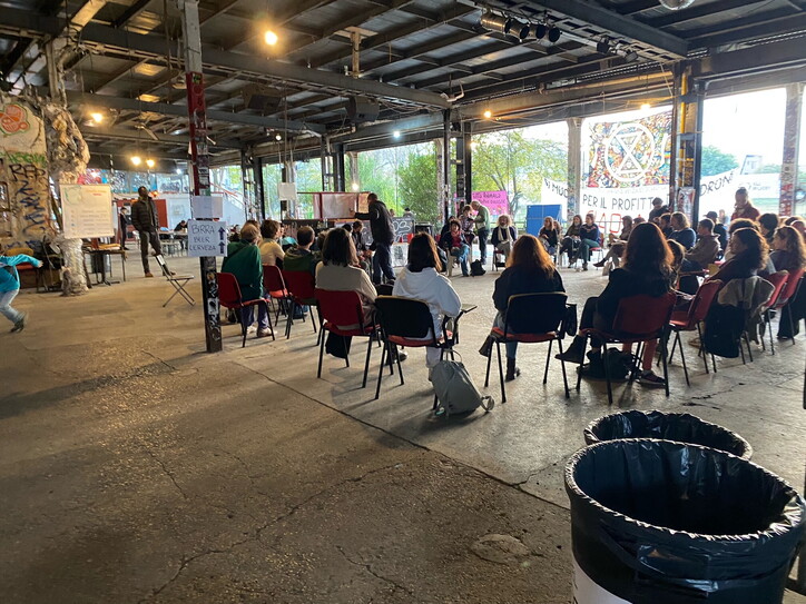 E se i leader del mondo si riuniscono al centro congressi progettato dall’archistar Massimiliano Fuksas, anche i manifestanti hanno il loro quartiere generale. Per certi versi non meno affascinante. Il centro sociale Acrobax, un ex cinodromo su viale Marconi, stretto tra la facoltà di Ingegneria di Roma Tre e la banchina del Tevere che per qualche anno ha ospitato Tiberis, la discussa spiaggia di Virginia Raggi, e che da anni è luogo di elezione per gli insediamenti abusivi che sorgono e spariscono ciclicamente. Dietro a un campo da basket pieno di ragazzi in canottiera, intenti a tirare a canestro a ritmo di trap, restano le grandi insegne “Corse di levrieri” e “Cinodromo” ed è qui che sorge il centro sociale. Ai piedi della pista dove un tempo gareggiavano i cani, da giovedì, in contrapposizione al G20, è in corso il Roma Climate Camp, una tre giorni di assemblee, seminari sulla giustizia climatica che culminerà con la manifestazione di oggi. Ieri circa 200 persone hanno piantato qui le loro tende. Un campeggio in piena regola. La maggior parte sotto la tettoia della curva dell’ex cinodromo.