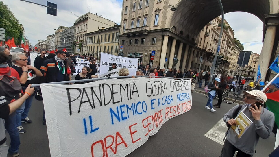 Striscioni no green pass e no vax a Milano