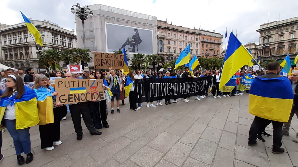 "La Russia ci vuole cancellare dal mondo. Aiutateci", è l'accorato appello di Irina Yarmolenko, una consigliera comunale di Bucha. Dieci, venti minuti di ampio racconto dalle terre devastate dall'invasione. Applauditi, sentiti. Da tutte le quattro anime del Duomo. A distanza ravvicinata. Bandiere Nato e falce e martello. Unione europea e arcobaleno della pace. Qualcuno scuote la testa, osservando l'altro. Ma i più sostengono che non è questo il giorno. Come dice Sala, "contro fascismo e nazismo non dividiamoci mai".