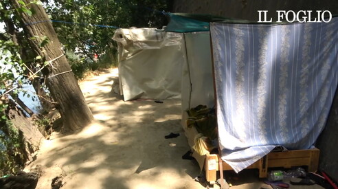 Baracche, sedie, vestiti stesi ad asciugare e tanta immondizia. Siamo nel cuore di Roma, a pochi metri dall'Ara Pacis, meta di turisti, è sorta una baraccopoli sotto il lungotevere di Augusta. Più avanti, superato ponte Cavour, un clochard è steso sul marciapiede alla ricerca di un po ' di ombra bloccando completamente il passaggio e lasciando sui volti dei passanti e dei turisti un ghigno di disappunto.