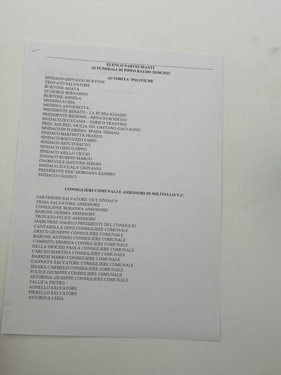 Non è un funerale ma la “sagra Baudo”, non c’è il pianto ma il “Pippo grazie”. Un paese di settemila abitanti, Militello, in provincia di Catania, si scopre capitale, un paese sperduto in mezzo ai fichi d'India e stoppie di Sicilia si chiede soltanto: “Viene Al Bano? E Gigi D’alessio ci sarà?”. Verranno. Verranno. Avrebbe detto Baudo: “Signori e signori, il funerale”. In lista ci sono anche Lorella Cuccarini ed Heather Parisi. Di Sicuro ci sarà il presidente Ignazio La Russa, e poi capi e capetti di Sicilia ma potrebbe esserci anche il ministro Guido Crosetto. Lo fanno sapere in Comune.