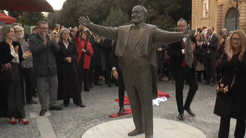 Il ghiaccio libera lo spirito di Pavarotti dal bronzo senza stile del suo monumento