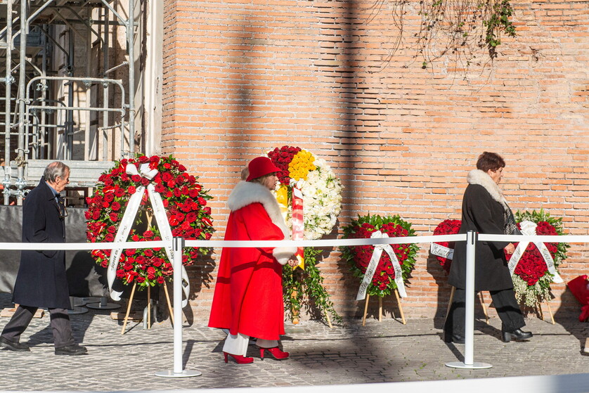 Centinaia di persone alla Basilica di Santa Maria degli Angeli e dei Martiri in piazza della Repubblica per rendergli omaggio. Nella chiesa trionfa il bianco, con fiori e corone composti soprattutto di rose. I suoi fiori preferiti