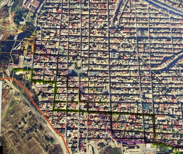 Nell'immagine qui sopra, diffusa dal Dipartimento della Protezione Civile Regione Sicilia, è indicata in viola la linea di evacuazione a 150 metri dal fronte di frana.