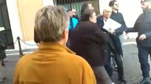A Montecitorio una decina di persone circonda e strattona l'ex deputato Osvaldo Napoli