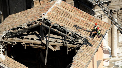 Nel pomeriggio di giovedì è crollato il tetto della chiesa di San Giuseppe dei Falegnami, nel centro di Roma, nei pressi del Campidoglio e dei Fori Imperiali. Le travi di legno che sostenevano la struttura sono precipitate nell'edificio. In quel momento la chiesa, utilizzata di solito per celebrare matrimoni, era chiusa al pubblico e non si registrano feriti.