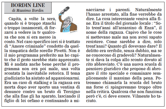 Massimo Bordin è morto il 17 aprile a Roma, la città dove era nato il 18 agosto del 1951. Giornalista e conduttore radiofonico, dal 3 aprile 2012 teneva una rubrica sul Foglio, la “Bordin Line”. Aveva chiesto di mantenere il riserbo sulla sua malattia, e nell'ultima settimana si era preso un periodo di ferie per curarsi, come aveva annunciato ieri Roberta Jannuzzi durante la puntata di Stampa e Regime, la rassegna di Bordin su Radio Radicale, della quale dal 1991 al 2010 è stato direttore. Lasciò l'incarico per divergenze con il suo editore di riferimento, Marco Pannella, continuando comunque a lavorare per la testata e a essere interlocutore di Pannella nella conversazione domenicale con il leader radicale. Sull'emittente, che in questo periodo è minacciata dal governo gialloverde, conduceva anche "Speciale Giustizia" e "Il Medio Oriente visto da Gerusalemme" con Fiamma Nirenstein.