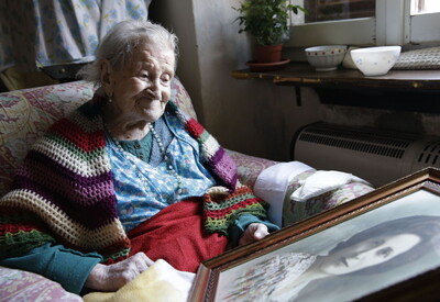 È in pensione dal 1954, era operaia in una fabbrica di sacchi di iuta. Non esce di casa da 25 anni, quando andò a pranzare con un cugino sul lungolago. Trovò così difficile fare le scale per rientrare in casa che decise di non muoversi più. Non guarda la tv, non riesce a leggere. Tutte le sere dice le preghiere, un po’ in italiano e un po’ in latino. Ricorda tutti i suoi morti, uno per uno [1].