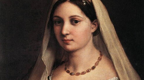 Per gli studiosi della moda e del costume, la straordinarietà della mostra sull’opera di Raffaello è racchiusa nella didascalia sulla collana a linea che cinge il collo del Ritratto di donna detta La Velata; più precisamente, nella suggestione che si tratti di un gioiello autentico di epoca romana classica: quarzi, di cui l’artista coglie con sapienza infinita il baluginio e il riflesso della luce e che tende ad avvalorare la teoria per la quale la bella giovane dalle forme morbide sia un’immagine ideale, frutto della meditazione dell’artista sui concetti di grazia e bellezza, e non il ritratto di Margherita Luti come suggeriva Giorgio Vasari, eccelso storyteller che però ci ha portati spesso sulla strada sbagliata. E’ infatti del tutto improbabile, e ce lo conferma anche una grande esperta e collezionista come Giovanna Frossi, che una giovane del primo Cinquecento indossasse un gioiello di epoca romana, perfino in funzione simbolica (il gusto del cosiddetto “vintage” è molto recente, mentre i gioielli “souvenir” degli anni d’oro del Grand Tour erano per l’appunto copie seguite agli scavi archeologici di Pompei).