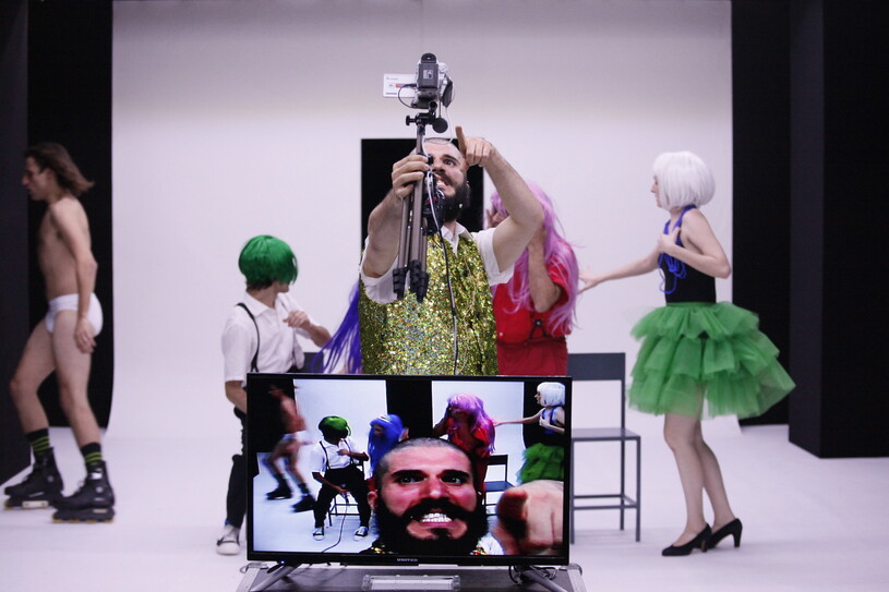 Ogni scena sembra affrontare un entimema zoppo, un ragionamento ipocritamente logico e in realtà volto alla capitolazione dell’idea morale di cui è gonfio. La regia di Cherstich scarnifica ulteriormente il testo panico allontanando tra loro gli attori all’interno di una scatola scenica che diviene spazio dell’aporia. In una dichiarazione del 1963, Fernando Arrabal, cofondatore con Jodorowsky e Topor del movimento panico, specifica che tra i temi e le fonti dell’uomo panico vi è “l’uso di tutti i postulati, di tutte le filosofie, di tutte le morali (rivendicandone le parti che convengono)”. Decenni dopo, nel 1992, Jodorowsky ribadisce il concetto: “Si dice che non si può inseguire più di una lepre per volta. Ma io posso inseguire ventidue lepri per volta! Non ho dei valori!”. Lo spazio nero di Cherstich è abitato da tutte le filosofie e da tutte le morali, oggetti scenici al pari di forni, aspirapolveri e carrelli dell’ipermercato; la società in miniatura non è più tale, l’insieme di corpi non forma più una comunità; il teatro di Cherstich inaugura una nuova scatola scettica.