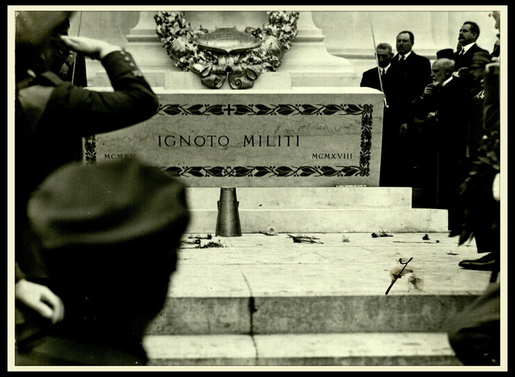 In Italia, nel luglio di quell’anno era stato un colonnello d’artiglieria, Giulio Douhet, sostenuto da padre Agostino Gemelli, a proporre l’idea di onorare tutti i caduti nella salma di un soldato sconosciuto: un “corpo mistico”, lo ha definito Laura Wittman, italianista della Stanford University, che incarnava il sacrificio di tutti i caduti e che rappresentava pure idealmente per i vivi il figlio, il marito, il fratello, il padre che aveva perduto la vita e il corpo al fronte. Passò più di un anno prima che il disegno di legge fosse promulgato e che il governo – presidente del Consiglio per la prima volta un socialista riformista, Ivanoe Bonomi, ministro della Guerra un civile, Luigi Gasparotto – lo mettesse in opera. Toccò a Gasparotto, che poteva muoversi sulla scorta delle comuni esperienze delle altre due potenze vincitrici, definire le modalità dell’operazione: un rituale che garantisse l’anonimato della salma prescelta (e la commissione istituita per questo compito fu vincolata a un rigido protocollo di segretezza) e la massima risonanza del tributo. Il punto di partenza era l’esumazione di undici corpi senza nome, da cercare nelle undici zone di combattimento più significative del fronte italo-austriaco: dal San Michele al Pasubio, dal Grappa al Montello a Gorizia e Monfalcone. Tra le undici bare, sarebbe stata scelta quella destinata alle esequie solenni e alla sepoltura a Roma al Vittoriano, il grande monumento in onore di Vittorio Emanuele II, il sovrano fondatore dello stato, che dieci anni dopo l’inaugurazione era già il simbolo dell’identità nazionale.