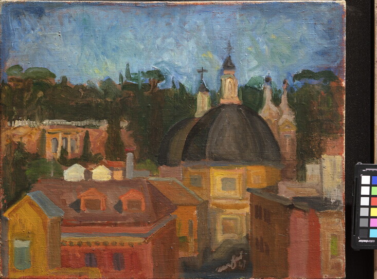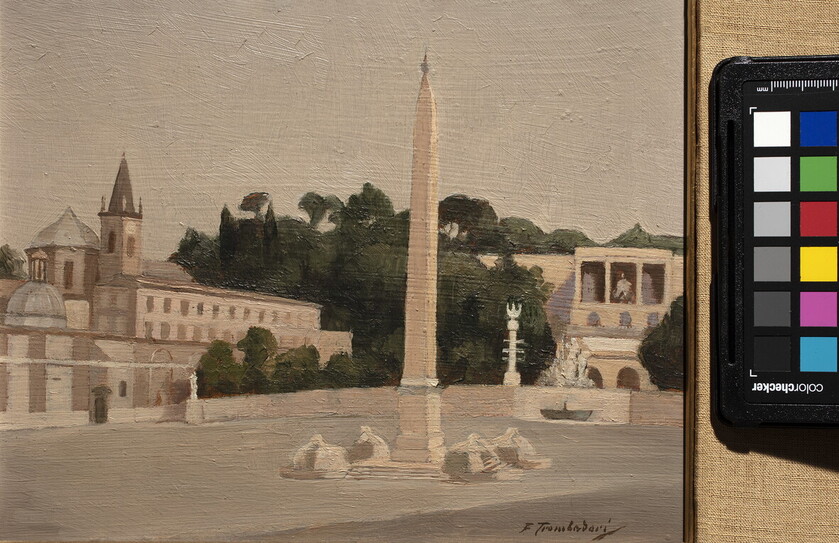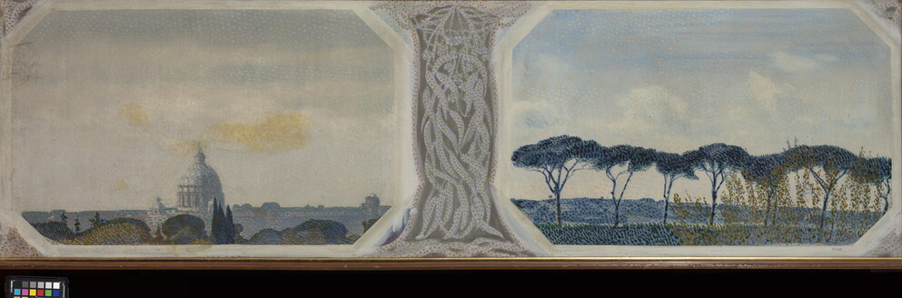 Giacomo Balla, Dittico di Villa Borghese (Paesaggio romano), 1910 olio su tela. Credits Gaia Schiavinotto - Collezione privata © GIACOMO BALLA, by Siae 2021