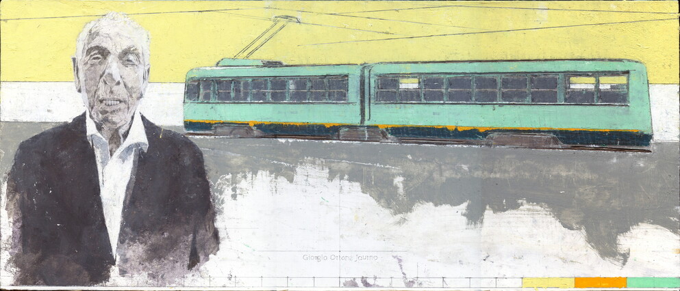 Ce n’è uno che sembra particolarmente spassoso, “Emanuele salvato dall’Atac”. “E invece questo è veritiero: Emanuele Di Porto riuscì a sfuggire ai rastrellamenti nazisti del 16 ottobre 1943 grazie alla solidarietà dei tranvieri romani che per due giorni lo nascosero, dodicenne, tra mezzi e depositi”. Così a 88 anni è finito ritratto accanto al tram, uno dei non così numerosi volti espressivi che si trovano sulle tele di Ortona: “La maggior parte delle facce che dipingo sono neutre, perché non sono quello che mi interessa”. Lui è un pittore scientifico, appassionato alle strutture, un architetto di formazione.