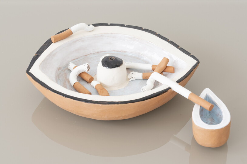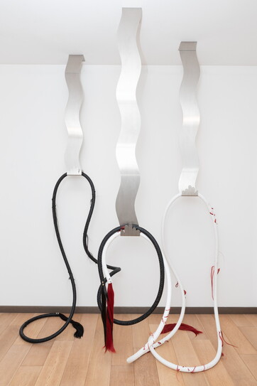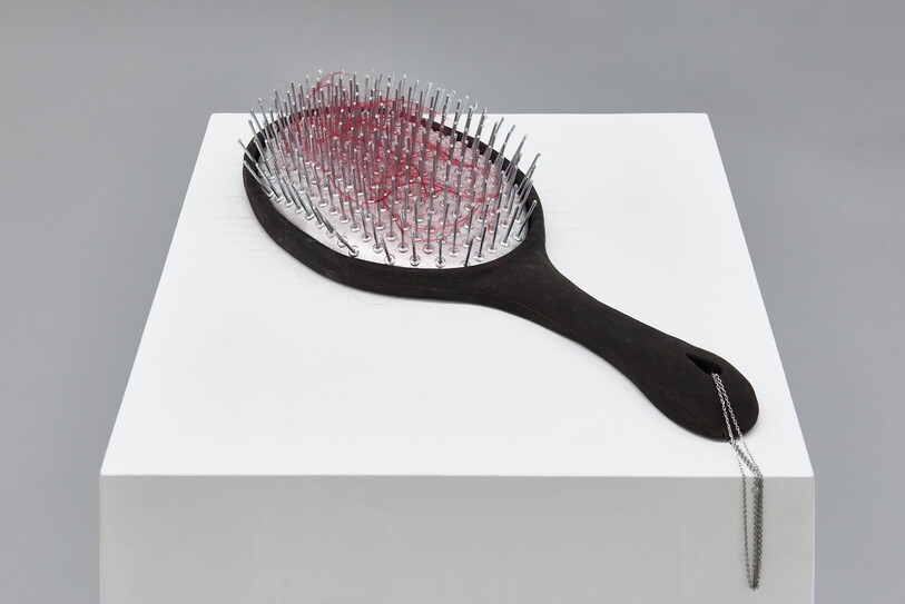 Fascinazione. Vengo attratta dai diversi materiali perché mi smuovono sensazioni, ognuna differente. Quello che sono portata a fare poi è accostarli partendo dal presupposto che hanno uno delle caratteristiche opposte rispetto all’altro. Ad esempio Nausicaa is a punk rocker, opera in mostra ora al Triangolo, è una spazzola sovradimensionata realizzata in argilla e acciaio. Ora, questi due materiali a livello immaginifico risultano uno opposto all’altro: l’argilla, materiale caldo, organico; l’acciaio invece freddo, industriale. Ciò che mi interessa mostrare è come il dualismo dei due materiali riesce a ricreare un tutt’uno in armonia e dialogo aprendo così spazi di narrazione/riflessione altri.