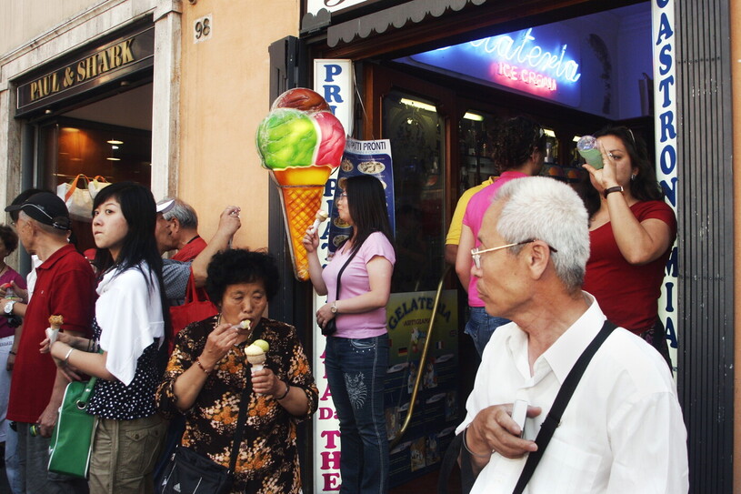 I turisti mangiatori felici di gelati ci indicano i luoghi dalla storia fortunata