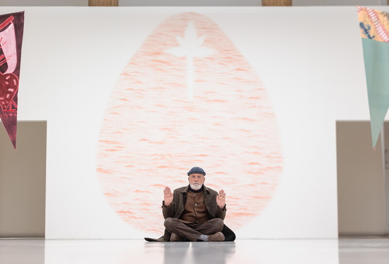 Francesco Clemente all’interno di una delle opere di “Anima nomade”, al Palazzo Esposizioni di Roma fino al 30 marzo 2025 © Alberto Novelli