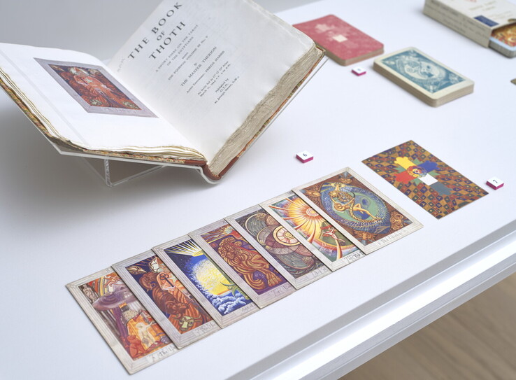Così le carte si trasformano in un repertorio di archetipi, che nella prima metà del Novecento non potevano lasciare indifferente non solo Warburg ma anche l’occultista britannico Aleister Crowley, mago, pensatore, un tipo pericoloso. Il fondo Crowley è stato donato negli anni ’60 al Warburg, e ora arricchisce la mostra. Con i tarocchi di Crowley si vede pure come l’esposizione “racconti una storia di donne particolari”, prosegue Mazzotta. “A illustrare i tarocchi di Thoth voluti dall’occultista è Lady Frieda Harris. Pittrice che fu l’unica donna nella vita di Crowley a ‘farlo correre’ e a tenergli testa. Per non dire di Pamela Colman Smith, che proprio nel 1909 illustra il mazzo conosciuto come Rider-Waite-Smith, oggi il più diffuso con i marsigliesi. Lei era una suffragetta”.
