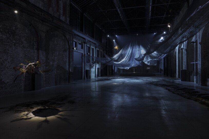 Nell’installazione di Prouvost, la materia si dissolve in vibrazioni luminose, immagini e profumi che restituiscono l’instabilità del reale. “L’intera mostra è un tentativo di dare forma fisica e sensibile a un mondo che sfugge alla razionalità meccanica”, spiega Samuele Piazza. “Le sculture si muovono come organismi, il video si deforma come una coscienza elettronica, il suono diventa materia che attraversa il corpo. È un’apertura verso una sensibilità nuova, capace di immaginare una realtà diversa, forse anche un’etica diversa”. In questo universo in bilico tra fisica e poesia, l’artista lascia che l’errore, l’interferenza e il glitch diventino parte integrante del linguaggio. “I video che vengono proiettati in qualche modo hanno un sapore, generano una sensazione immediata, quasi artificiale, in cui l’immagine si interrompe, cambia, diventa un’altra cosa. È l’interpretazione della macchina rispetto a ciò che vede, un’agency condivisa tra l’artista e l’interferenza casuale”.