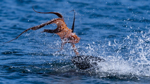 La consacrazione del polpo come animale totemico avviene nel 2016, con la pubblicazione di “Altre menti”, saggio del filosofo della scienza Peter Godfrey-Smith (Adelphi): i cefalopodi sono paragonati a creature aliene, dotate di nove cervelli (in realtà si tratta di nove gruppi di nervi simili a cervelli, uno alla base di ciascun braccio e un altro nella testa), esempio di una linea evolutiva lontanissima dalla nostra. Nel suo ultimo libro, “Vivere sulla terra. La vita, la coscienza e la costruzione del mondo naturale” (Adelphi 2025) Godfrey-Smith va ancora oltre e, con un radicale mutamento di prospettiva, definisce la mente animale non più solo come un prodotto dell’evoluzione, ma come una sua causa. E così, tra incontri ravvicinati, problemi epistemologici, biologici ed etologici, ecco che il polpo diviene l’animale guida di tante indagini sulla mente animale, protagonista di un genere letterario che si colloca nella zona di confine tra filosofia, poesia, arte e scienza.