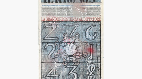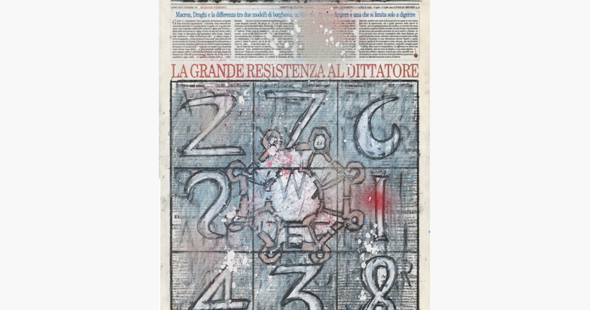 Le esperienze creative di Bercah hanno così subìto una potente accelerazione quando gli eventi che ci hanno accompagnato e ci accompagnano nell’ultimo decennio hanno assunto la forma della minaccia e della distruzione. Da un alto la pandemia, dall’altro l’invasione dell’Ucraina sono stati due giganteschi fenomeni che hanno provocato in Bercah l’urgenza di affermare i propri valori etici ed estetici, invadendo pacificamente le pagine di un giornale come il Foglio, utilizzandone l’intrinseca energia comunicativa che lo caratterizza come supporto indispensabile della propria azione. Il Foglio vi si presta. E’ fitto e gremito, quasi fosse stato pensato secondo l’antico principio dell’horror vacui e, appunto per questo, l’elaborazione artistica di Bercah ne sfrutta l’icasticità dei titoli che spiccano sovente solenni nel denso e rigoroso impaginato come fossero architravi su cui il disegno architettonico si appoggia restandone magnificamente sostenuto.