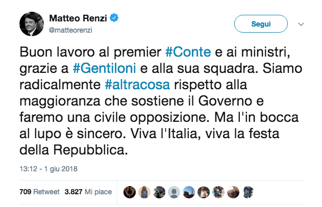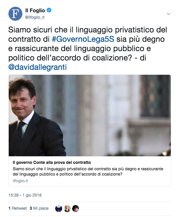 Non lontano, in linea d'aria vicinissimo al palazzo del Quirinale, il Pd manifestava per il rispetto della Costituzione, che va sempre bene, ma la mobilitazione era stata un po' superata dagli eventi e soprattutto dalla rappacificazione almeno apparente tra Luigi Di Maio e Sergio Mattarella (che in quegli stessi momenti si stavano dando la mano dopo il giuramento del neo vicepresidente del Consiglio). Però con l'aggiunta di manifestazione anti-populista si recuperava un senso anche coraggioso all'iniziativa, mentre il costituzionalista Stefano Ceccanti ha approfondito alcuni aspetti controversi del nuovo assetto governativo.