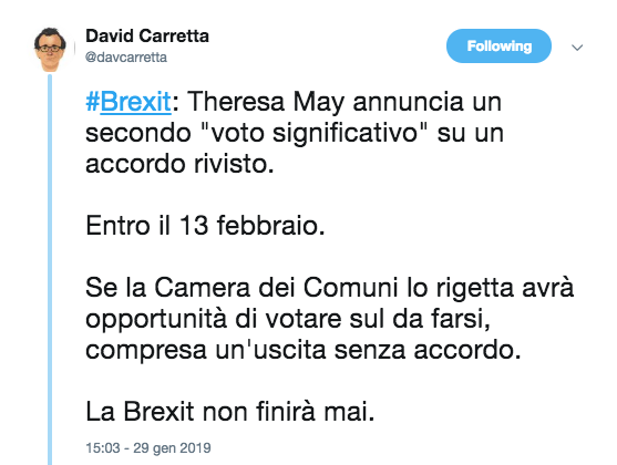 La Brexit non finirà mai, ci ricorda periodicamente David Carretta.