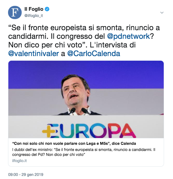 E che succede al fronte europeista, visto da Calenda.