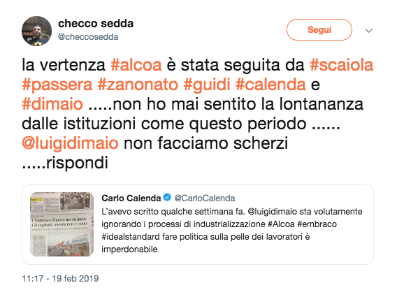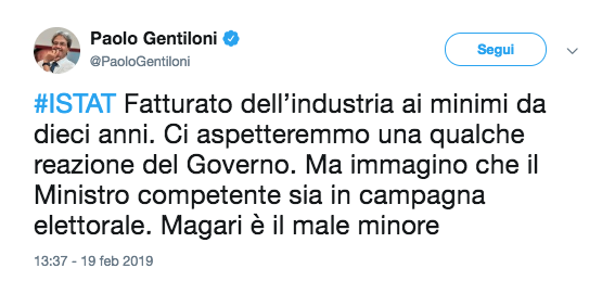 Ronzano elitre fuori, ronza il folle mortorio...vabbè non esageriamo e lasciamo in pace Montale, però mentre ronzano un sacco di robacce giudiziarie e schifezze sovraniste ci sarebbe, nel mondo sottostante ma reale, l'economia che va proprio male. Istat racconta di ordini in calo drastico, e quindi di industria che si riassetta su livelli produttivi più bassi. Le associazioni degli imprenditori continuano a segnalare i guai incipienti, ma assieme dicono che nessuno le ascolta. Di Maio segue solo i dossier che lo interessano per la ribalta pubblica e giusto il tempo di farsi vedere un po' con le luci giuste (dai rider alla Pernigotti, dall'Alitalia all'Ilva). Per il resto è assente, lo segnala anche il combattivo e a sua volta mediatico operaio-tipo dell'Alcoa, l'azienda dell'alluminio localizzata in Sardegna e che doveva ripartire ma sempre manca un pezzetto per completare il piano. In quella zona del Sud sardo non ne possono più dei rinvii. ma non ricevono attenzione, neanche un decimo di quella riservata ai pastori. E il ritiro di Di Maio dal sostegno per la competizione regionale (ben documentato dal Foglio di oggi, in cui si dice che il ministro ha cancellato gli impegni nell'Isola per evitare di accostare la propria faccia a un altro flop) è il segno che ai sondaggi negativi seguirà anche il disinteresse del ministro per le vertenze industriali locali. Ahia.