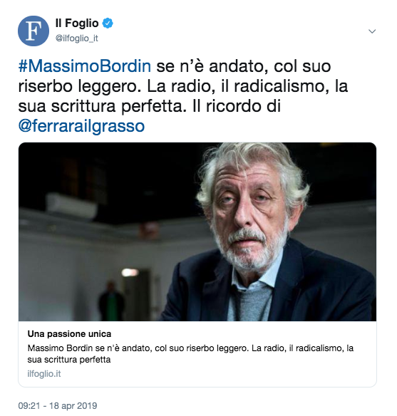 Domani ci si riunisce per Massimo Bordin, per testimoniare dolore e ricordo.