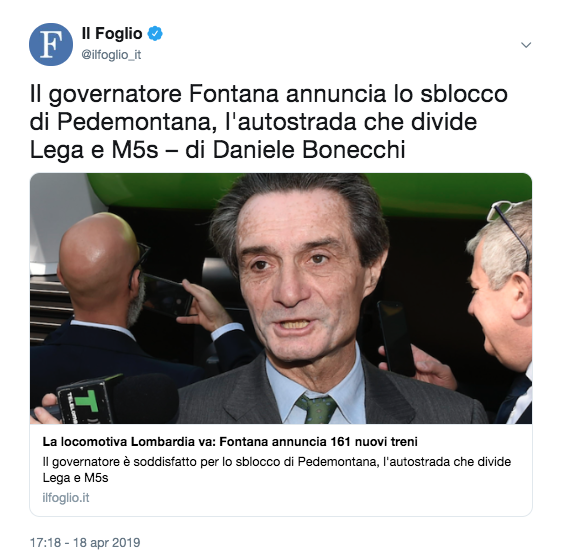 E, per tornare a ciò che divide, ecco un'opera che piace alla Lega e non ai 5 stelle.