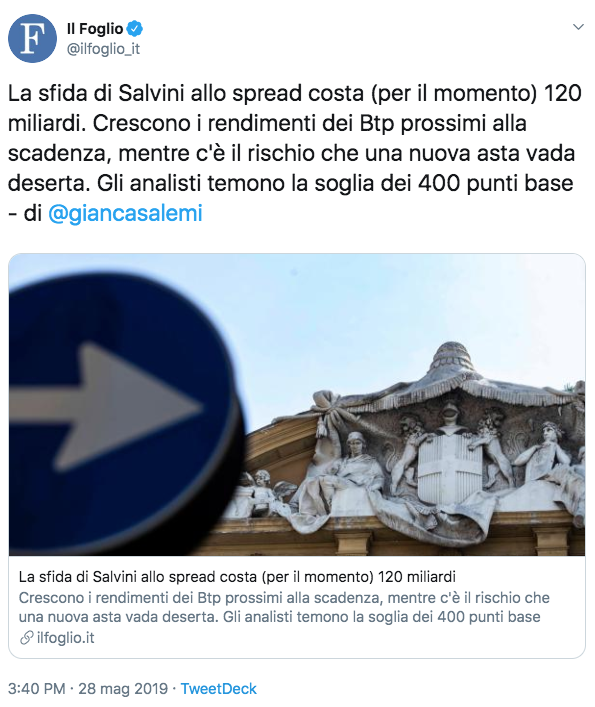 E invece no, si va avanti con le affermazioni sfidanti, avventate, senza senso economico e finanziario.