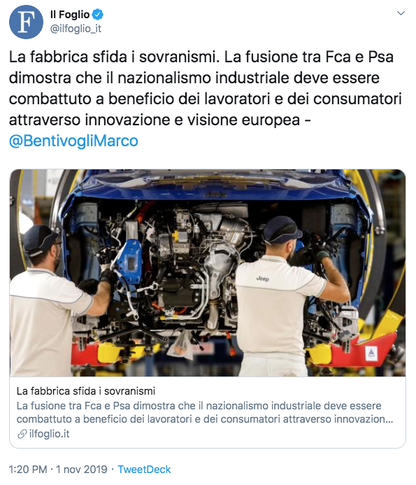 Perché il nazionalismo proprio non sarebbe servito a nulla (e per fortuna che i difensori dell'economia italiana, italiana, italiana, per gli italiani, dagli italiani, attraverso gli italiani, con gli italiani, questa volta non si sono dati troppo da fare). E perché invece la strada dell'impresa sovranazionale e della produzione diffusa è la più efficace.