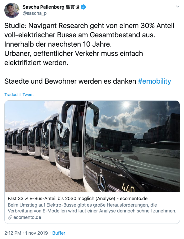 L'elettrico è la soluzione ideale per i motori dei mezzi di linea, compresi i grandi bus, perché gli spostamenti programmati permettono di ottimizzare i tempi di carica e quelli di uso. Nelle città c'è il doppio vantaggio di zero fumi e zero rumore (e anche motori dalla risposta pronta, adatti al traffico urbano).