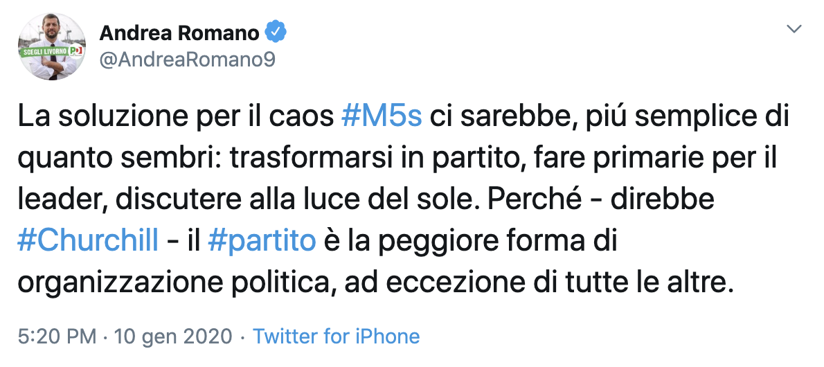 Uno sguardo, più da tecnico che da partner politico, a ciò che avviene nei 5 stelle. La cosa effettivamente sorprendente è che un patrimonio elettorale straordinario, come quello dei grillini alle ultime politiche, non abbia generato almeno una spinta inerziale, non abbia indotto una maturazione. E' una vicenda che finirà nella storia politica senza essere passata per la cronaca politica, almeno senza esserci passata in modo attivo. Evidentemente i semi di antipolitica piantati dai fondatori Grillo e Casaleggio, gli anticorpi rispetto a una ordinaria gestione del potere, erano così forti da impedire una normale evoluzione verso forme strutturate, organizzate, di rappresentanza del consenso. Anche scontando inevitabili perdite rispetto all'exploit del 2018 un qualunque gruppo minimamente organizzato avrebbe comunque mandato avanti un'esperienza politica così carica di sostegno popolare. Si diceva, qualche cena fa, che almeno una parte del grillismo, trasformata in partitone assistenziale, avrebbe potuto sopravvivere, proprio grazie all'applicazione della cosiddetta governabilità. Eppure sembra che neanche quell'esito stia riuscendo. O forse è il lavoro silenzioso di Giuseppe Conte a permettere il mantenimento di una quota di consenso grillino sotto altre forme. Ne fa le spese la presunta leadership di Di Maio, con quel titolo pomposo e vuoto di capo politico, espressione un po' tira-pernacchie a pensarci bene. Il documento firmato da grillini di non eccelsa sostanza che lo ha sostanzialmente sfiduciato resta memorabile soprattutto per il ritorno, finalmente, a un sano politichese, abbandonando gli stilemi da testo arruffato di blog. Comunque dall'esterno, lo sguardo più da tecnico che da politico, arrivano consigli, ma più che auspici di futuro sembrano constatazioni di un fallimento.