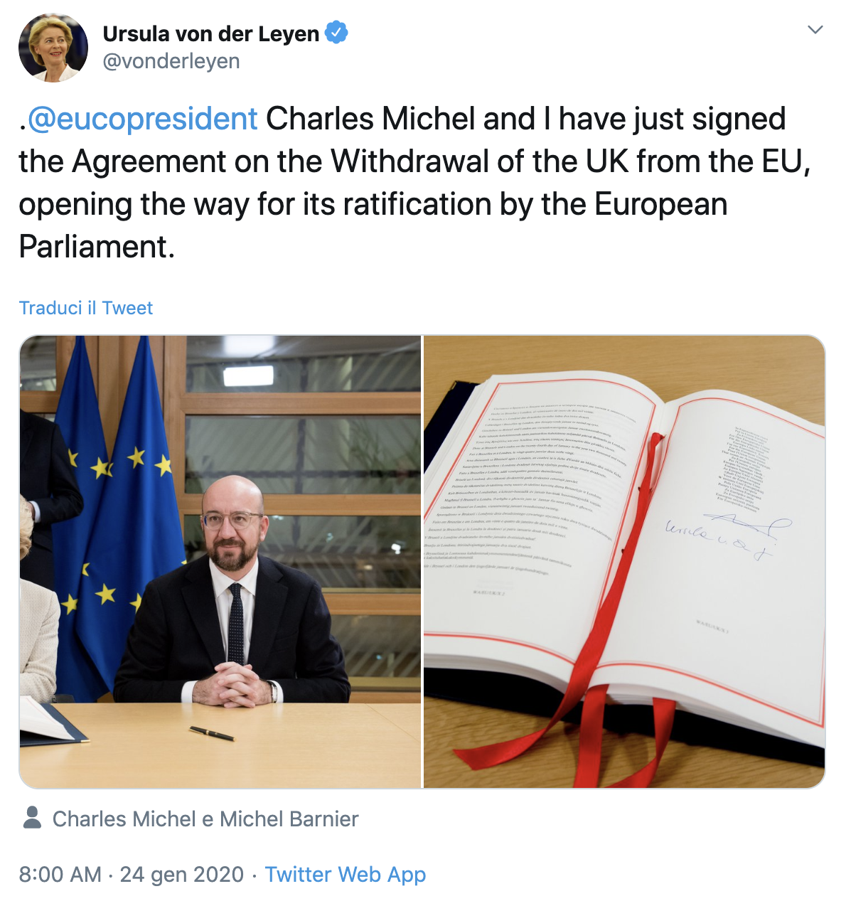 Accordo firmato per l'uscita di UK da Ue (procede così, in modo fintamente lineare, un processo che lineare non lo era mai stato) e intanto si nomina un rappresentante diplomatico.