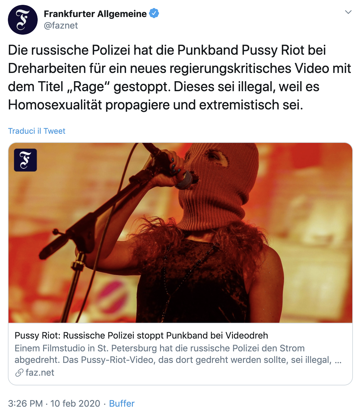 Sanremo accoglie e dà spazio, la Russia arresta.
