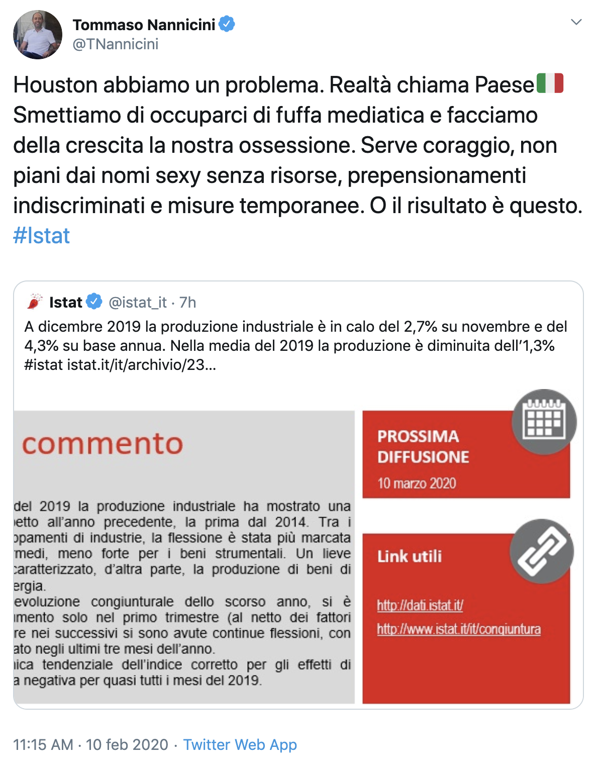 Attenti all'economia e al lavoro (consiglio per il governo).