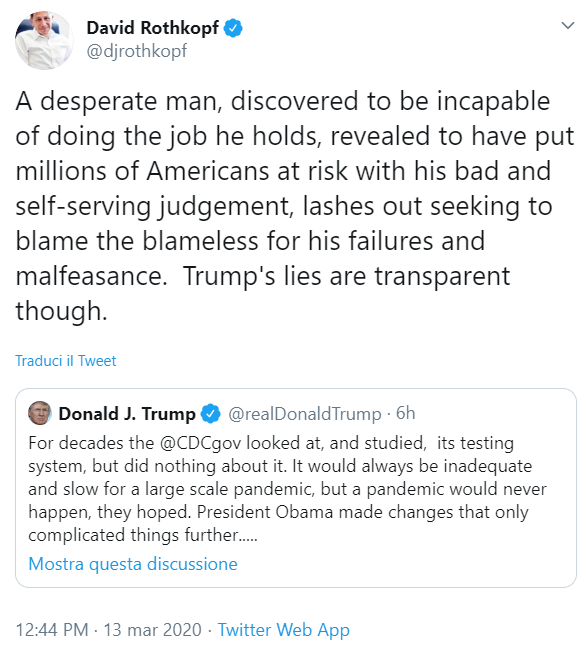 In Usa, come dicevamo, stanno friggendo Donald Trump per la gestione della crisi sanitaria. Un disastro assoluto, sia per le decisioni prese (non prese), sia per la comunicazione.