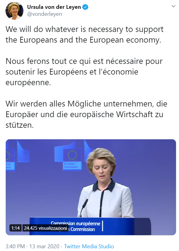 La commissione e, si spera, anche i governi europei prendono impegni per un'azione concertata sul lato fiscale. Di certo c'è che, anche grazie alle regole già scritte negli accordi, in una situazione di eccezionale gravità come questa a tutti è dato spazio per manovra economiche super espansive in deficit.