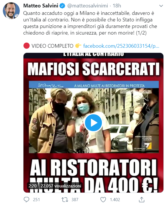 Uno schema tipico della destra antidemocratica prevede il salto delle rappresentanze organizzate (sindacati, associazioni imprenditoriali, intermediari sociali e perfino partiti) per dare la parola direttamente alle persone, agli interessi individuali. Si simulano operazioni dal basso, inesistenti o almeno non spontanee, per mostrare che i rappresentati non si sentono più tali e che vogliono andare per le spicce, portando in forme protestatarie improvvisate le loro lamentele. In questi giorni sono partite molte iniziative di questo genere. Valgano per tutte quelle messe in atto da alcune decine di gestori e proprietari di bar e ristoranti milanesi. Mentre le loro associazioni (sono tante e varie e in grado di interloquire con governo e enti locali) si danno da fare per ottenere il massimo possibile ecco che arrivano le manifestazioni di piazza a rompere lo schema concertativo. Li aiuta la visibilità ottenuta con piccolissime manifestazioni rese di impatto perché la polizia non può esimersi nell'applicare le regole contro gli assembramenti dovute all'epidemia. Così la presenza in giornali e Tv si moltiplica, il web è agitato di suo, e un movimento iper minoritario diventa la voce degli imprenditori del commercio. È un comportamento antipolitico e populista che riproduce nel mondo delle rappresentanze lo stesso schema del grillismo. Con questo si saltava la rappresentanza politica, con le manifestazioni di questi giorni tocca a quella economica. Ovviamente i giorni difficili della fase 2 sono perfetti. C'è un sacrificio che colpisce tutta la società e ci sono danno economici per tutti. Addossare tutto non solo al governo ma anche alle organizzazioni di rappresentanza è un gioco cinico e facile. Ed è un tipico tratto, come si diceva, del qualunquismo, del populismo di destra. La cosa interessante però è che l'Italia subisce questa iniziativa qualunquista mentre ha al governo il maggiore partito populista d'Europa. È un fatto politicamente appassionante e che potrebbe avere sviluppi. Lo scontro tra qualunquismo e populismo, definendo il primo come un classico movimento antipolitico di destra e il secondo come uno schema ripetitivo per cui le scelte giuste sarebbero ovvie se solo si lasciasse la parola al popolo e non alle élite, è una sfida politica inedita e che merita le nostre chiacchiere a cena.
