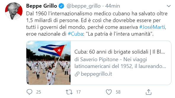 Tra russi, cinesi e americani (l'Europa non lo sfiora), Beppe Grillo sceglie i cubani