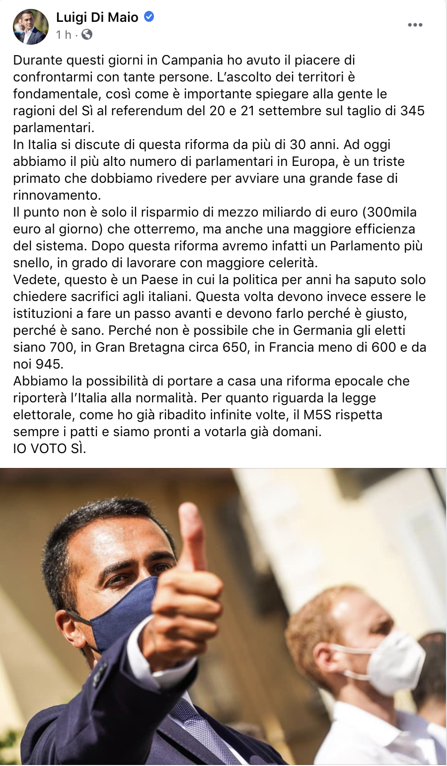 La nuova legge elettorale siamo pronti a votarla domattina, dice Luigi Di Maio (quello che si era levato la cravatta, che non faceva più il capo politico, vabbè) su Facebook