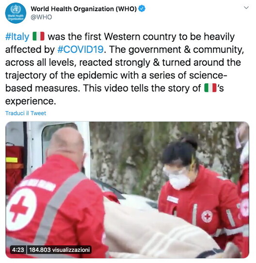 Dopo i grandi giornali internazionali è l’Organizzazione mondiale della sanità a riconoscere pubblicamente i meriti dell’Italia nella gestione della crisi sanitaria