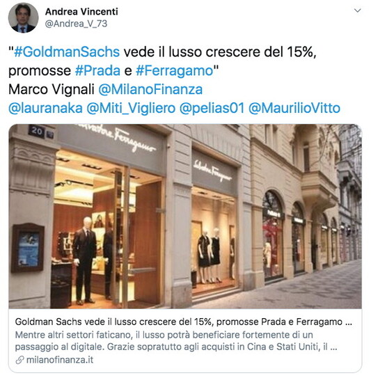 proviamo a legare il link di sopra con questo qui che riguarda la fiducia delle imprese rilevata dall’Istat e le stime delle grandi banche d’affari dicono che ripartirà presto anche il mercato del lusso, recuperando il terreno perso e anzi guadagnandone di nuovo