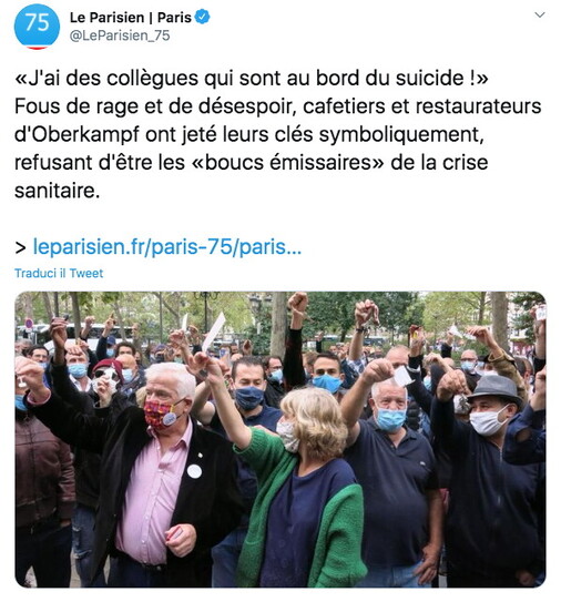 e a Parigi, come ieri a Marsiglia, i gestori di bar e ristoranti sono in subbuglio per l’intenzione delle autorità di chiudere tutte le attività dei locali pubblici alle 22